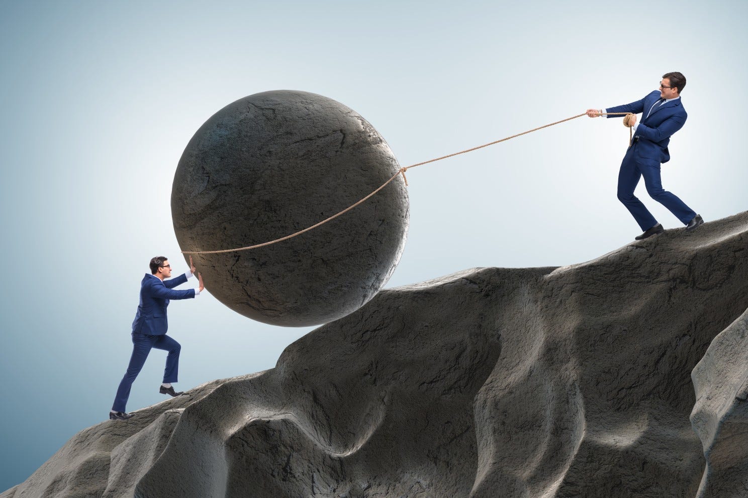 Businessmen with Boulder: Shutterstock